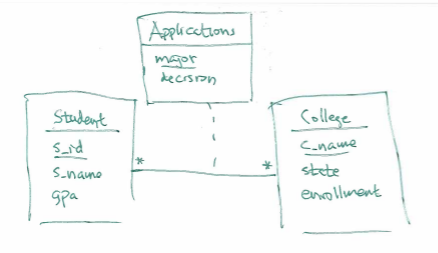 As you can see, the three tables we come up with after the final step, called students, colleges and app'', are the same as the ones we got when we created an ER-model in week 2.