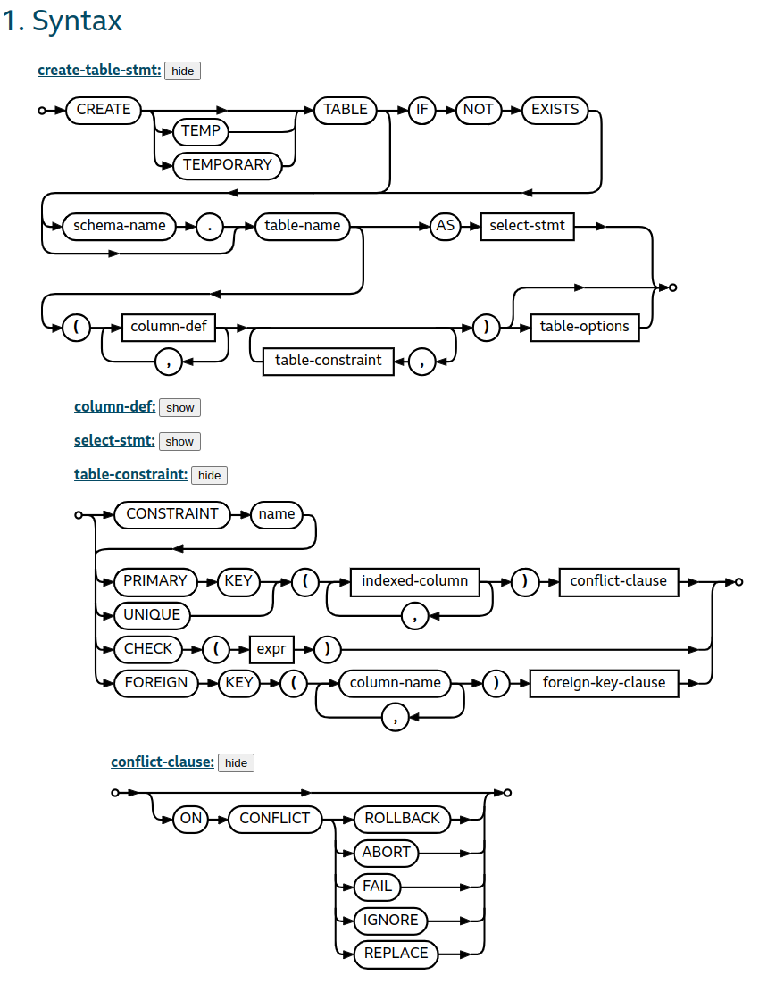 The SQLite3 syntax diagram for CREATE TABLE shows that we can add constraints to our columns: